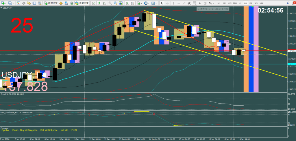 全体的にUSD/JPYは158円台前半〜159円台でのレンジ圧力が続いており、上値では介入警戒、下値ではサポート意識が強く働いています。