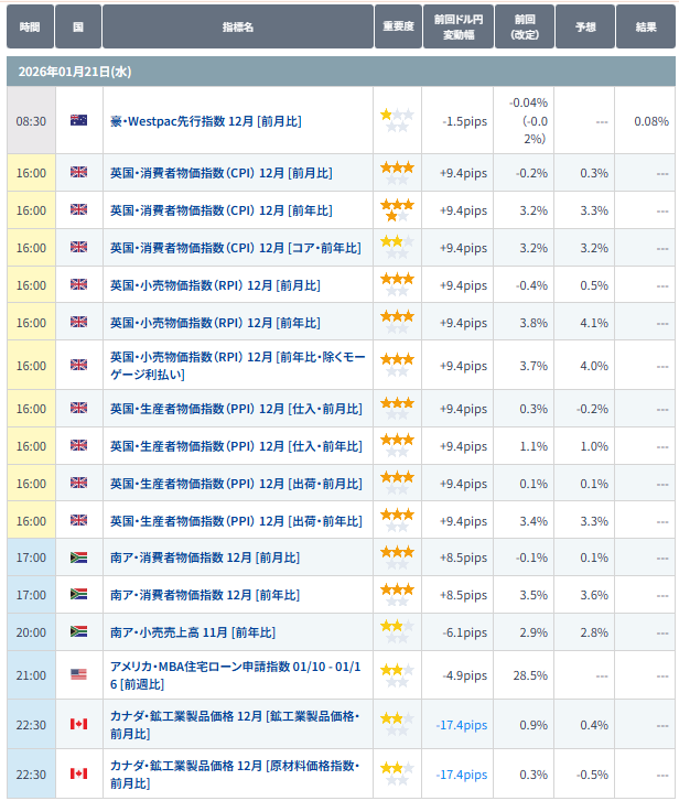 - 16:00 英国 消費者物価指数(CPI) 12月(重要度:中 / JST)